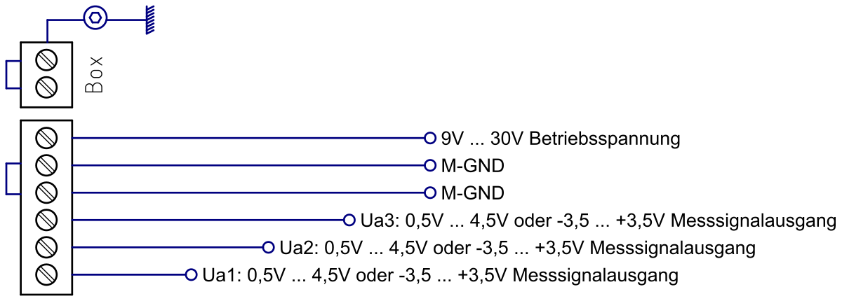 - Sensoren und Spannungsnormierverstärker sind galvanisch vom Gehäuse getrennt