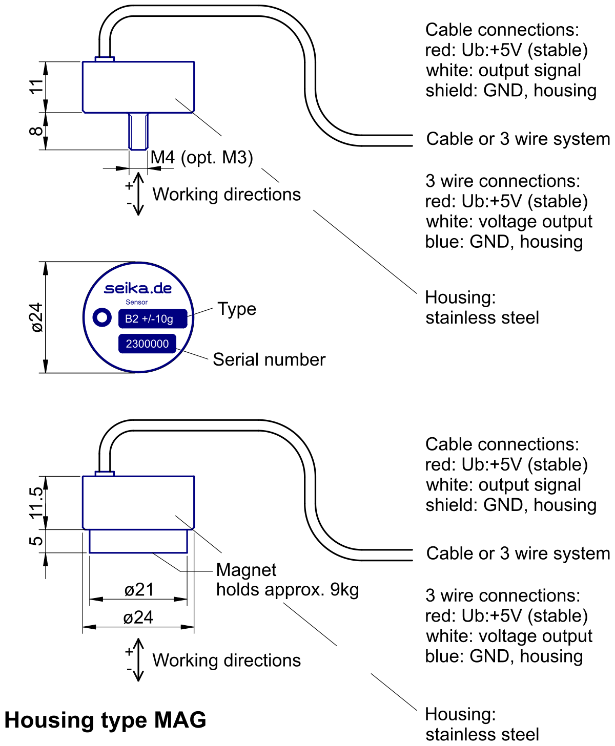 - multiple housing options – M4 thread (default), M3 thread, magnetic housing, special requests