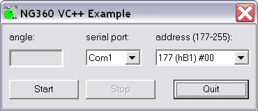 This directory contains an example program for programmers, with complete MS Visual C++ sourcecode. This open source example program developed using MS Visual C++ 5.0 provides some information how to develop interface software for the RS232/RS485 converter and the NG360 sensors.