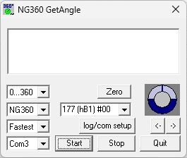 Only one program (GetAngle.exe or NG360Setup.exe) may access the serial port at any one time, although more than one may