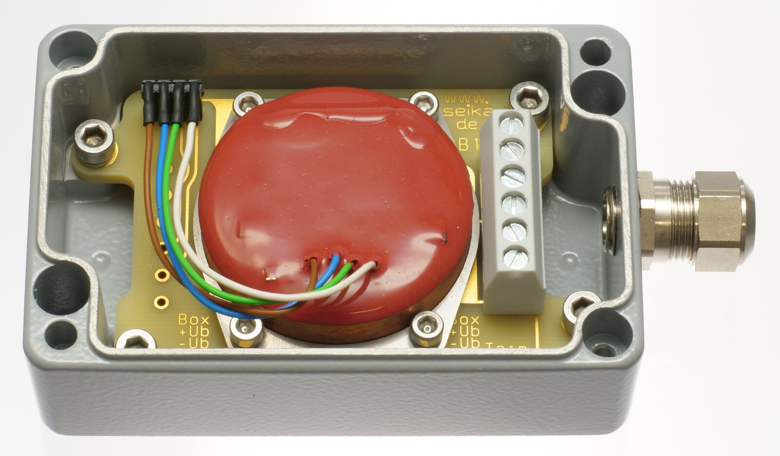 In addition to the sensor, the box contains extensive EMC protection and RS485 terminator resistance that can be de- and reconnected via a soldering bridge.