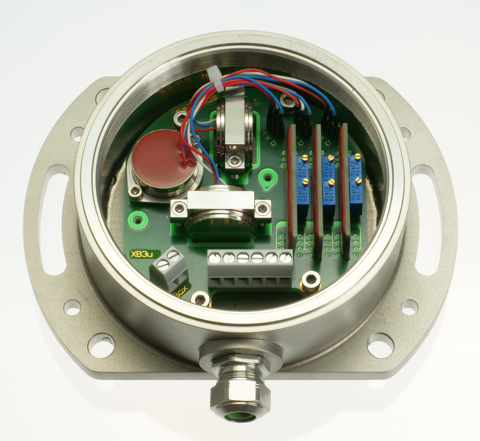 The XB sensorbox is an extra robust, pressure-, saltwater- and corrosion-proof stainless steel housing with an integrated sensor or sensors and electronic systems as described for the SB series sensor casings.