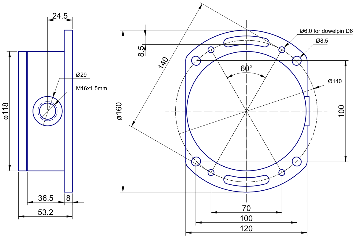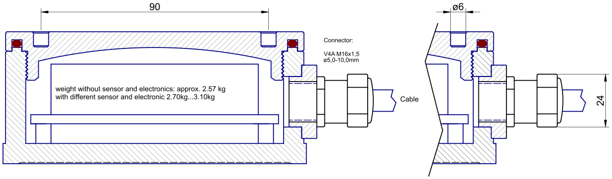 | Cable gland | ATEX M16 x 1.5 cable gland (stainless steel with integrated strain relief) |