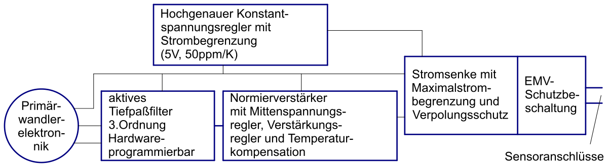 - integrierte Sensorelektronik einschließlich Stromnormierverstärker