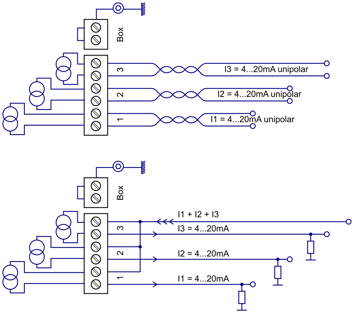 - either connection polarity - possibility of 4-wire connection for both measuring loops