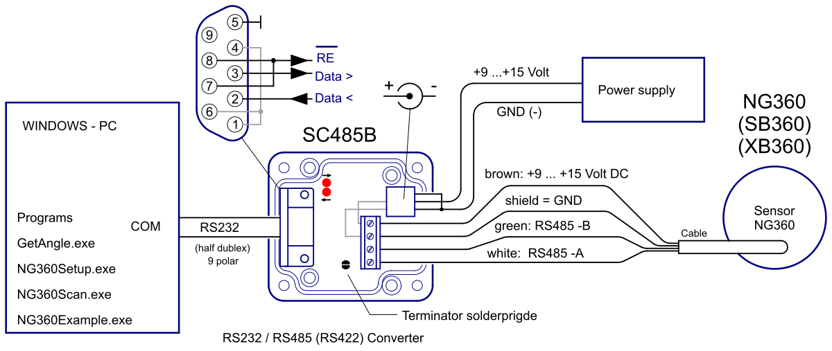 The interface converter connects any SEIKA sensor with RS485 data output interface to the RS232 port of a computer.